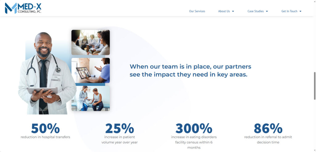 Med-X Consulting helps healthcare organizations meet the immediate medical care needs of people who have eating disorders and behavioral health conditions. The impact data of their services is strong. Their team simply needs touchpoints with the right customers to drive growth. That’s why they brought our team in when it was time to launch a website and make their brand tangible. They also needed simple brand assets that can drive their presence at industry events and give them context to engage customers.