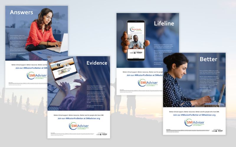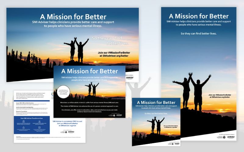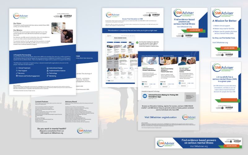 SMI Adviser was funded in 2018 when the American Psychiatric Association (APA) was awarded a 5-year grant from the Substance Abuse and Mental Health Services Administration. The initiative faced a few immediate challenges. One, it needed an actual name and had a very short timeline to grow from an idea on paper into a meaningful brand. Two, it needed a brand narrative to tell a story and deliverables to meet identified needs. And finally, it had to engage hard-to-reach mental health professionals across the country in pursuit of specific milestones and growth KPIs.